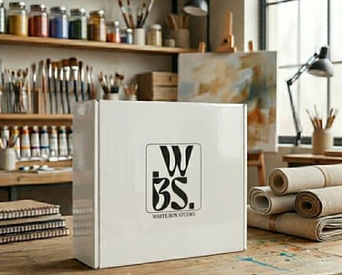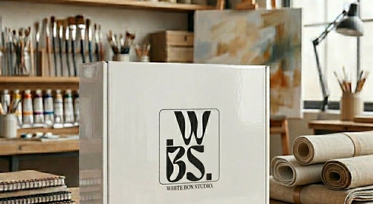 Located in Arbroath, White Box Studio is a creative art studio dedicated to fostering original expression and craftsmanship. The brand's visual identity utilizes clean squares to signify the "box," creating a modern framework for the bold, fluid typography within.
