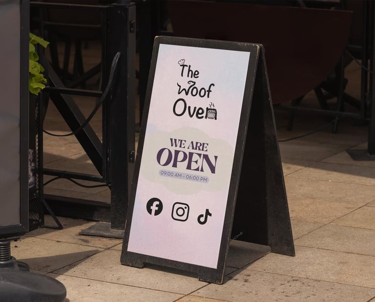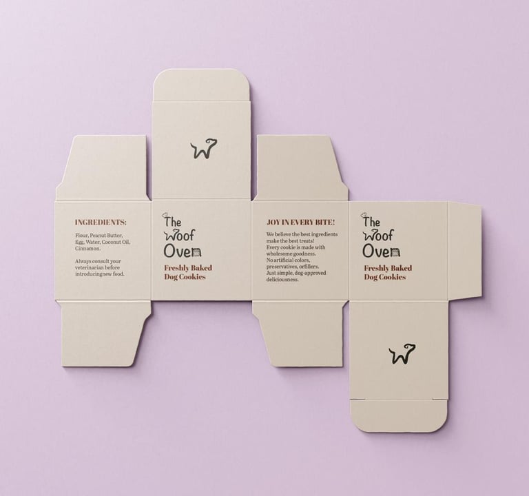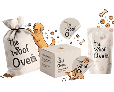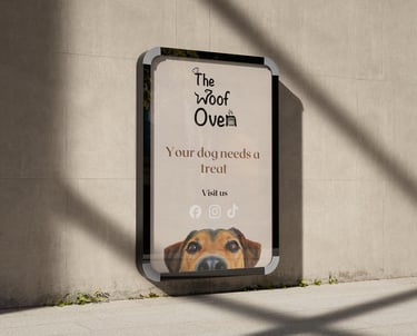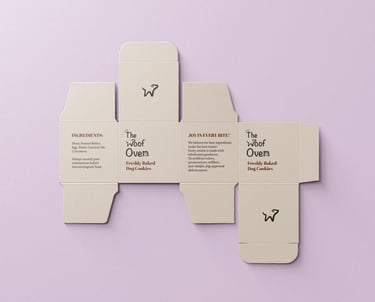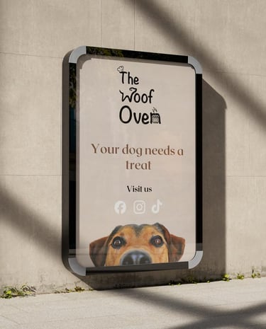The Woof Oven is a charming Canadian bakery dedicated to crafting wholesome, delicious treats specifically for dogs. Its playful identity features a custom-designed logo where the "W" takes the shape of a dog and the "n" becomes a cozy oven, all topped with a signature chef’s hat to represent artisanal quality.