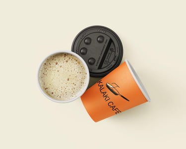 Kalaki Cafe is an innovative Indian takeaway and restaurant concept that celebrates authentic South Indian flavors. The brand's unique logo is thoughtfully designed around the Tamil letter "க" (Ka), creatively integrated into a kitchen pan to represent its rich cultural heritage and culinary expertise.