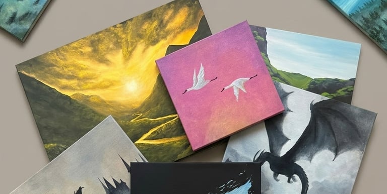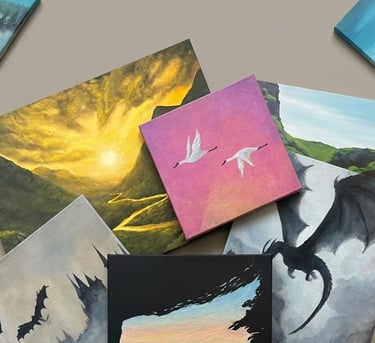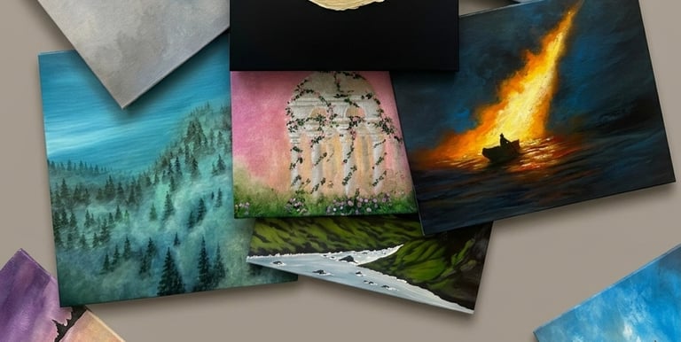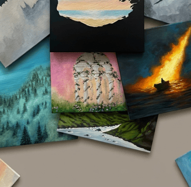 Explore a collection of unique, hand-painted worlds. From the depths of misty forests to the fire of a sunset, each piece is an original expression of atmosphere and emotion on canvas.